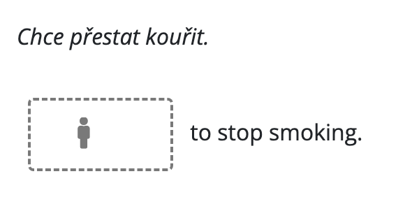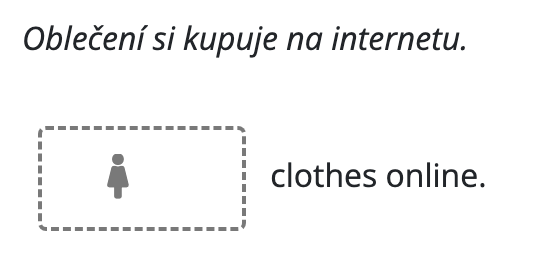 Pro rozlišení mužského a ženského rodu v překladových doplňovačkách zobrazujeme jako nápovědu symbol panáčka. Když do pole začnete psát, symbol zmizí. Ikonka se automaticky zobrazuje všude tam, kde pole pro doplnění má obsahovat osobní zájmena he/she a přivlastňovací his/her. V některých případech to možná bude nadbytečné.