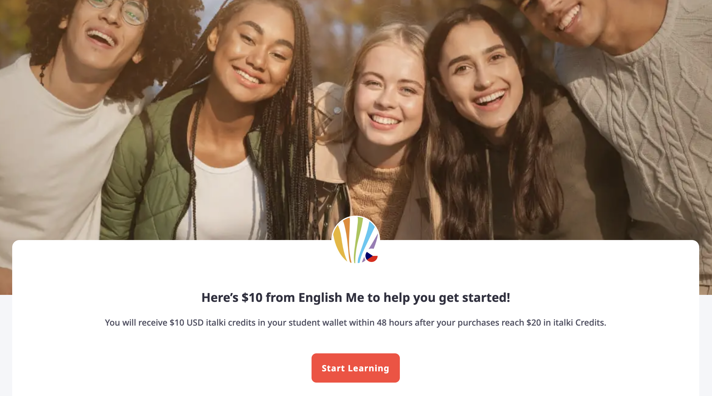 Zaregistrujte se do italki tím, že kliknete na následující odkaz, utraťte na italki minimálně 20 dolarů (cca 2 hodiny konverzace) a získejte bonusový kredit 10 dolarů!