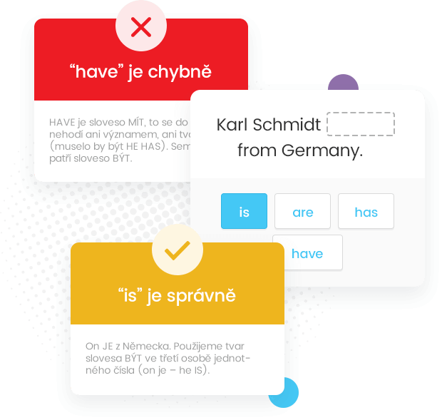 I obtížnou gramatiku vysvětlujeme jednoduše a v češtině. A veškerou teorii učíme na příkladech ze života. Díky tomu látku snadno pochopíte a nové znalosti zaručeně uplatníte v praxi.