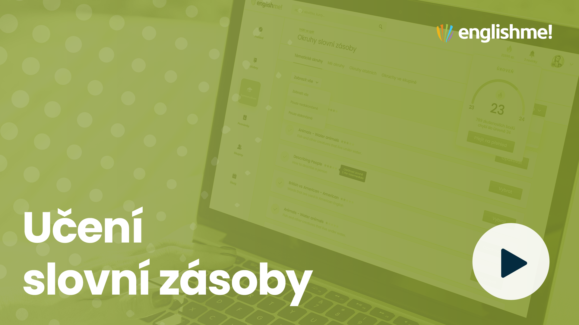 Přes 23 tisíc slovíček s překladem, definicí, příkladovou větou, většina s výslovností a obrázkem. S englishme! trénujete slovní zásobu různě. A ke slovům, která vám dělají problémy, vás vrací – dokud je neumíte.